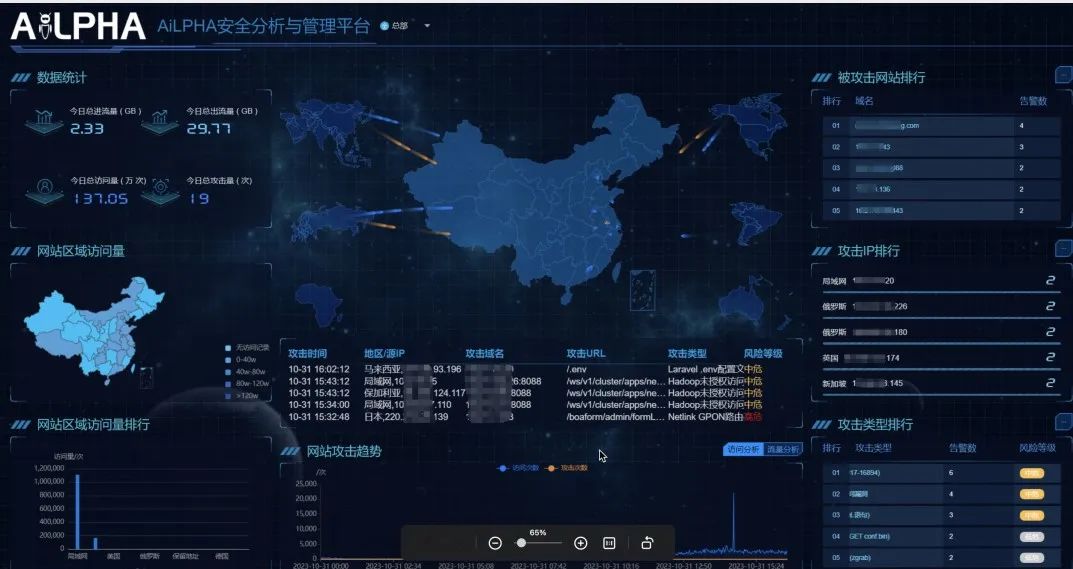 平臺能夠從多個維度,使用各種可讀性高、美觀的可視化系統(tǒng)、展現(xiàn)安全態(tài)勢;