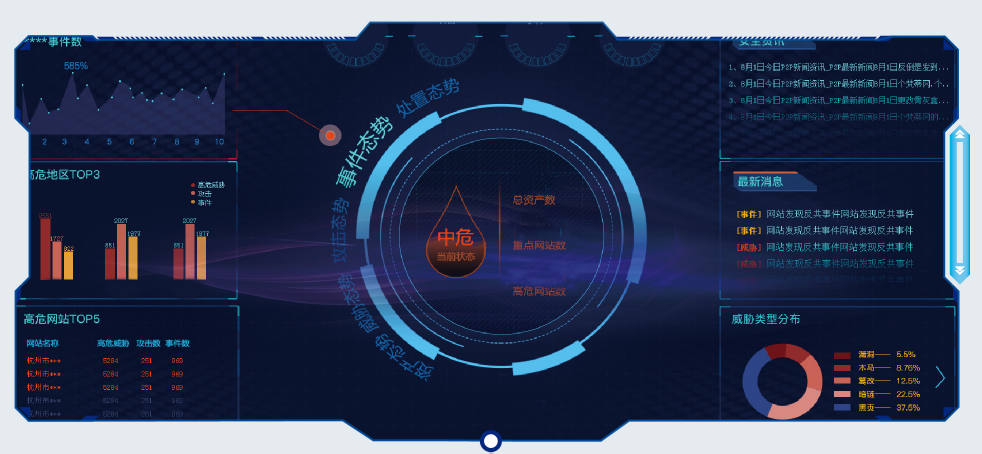 該市智慧公安系統(tǒng)結(jié)合網(wǎng)安業(yè)務(wù)流程和工作重點(diǎn),多維度展示各類網(wǎng)安業(yè)務(wù)重點(diǎn)數(shù)據(jù),以網(wǎng)絡(luò)資產(chǎn)管理為基礎(chǔ),結(jié)合事前掌握隱患、事中監(jiān)測攻擊、事后管理實(shí)踐的業(yè)務(wù)思路,形成總體態(tài)勢、安全隱患、安全攻擊、安全事件、通報(bào)預(yù)警等六個(gè)維度的可視化展示。同時(shí),根據(jù)數(shù)據(jù)碰撞比對、智能分析模型應(yīng)用,形成數(shù)據(jù)分析情報(bào)。