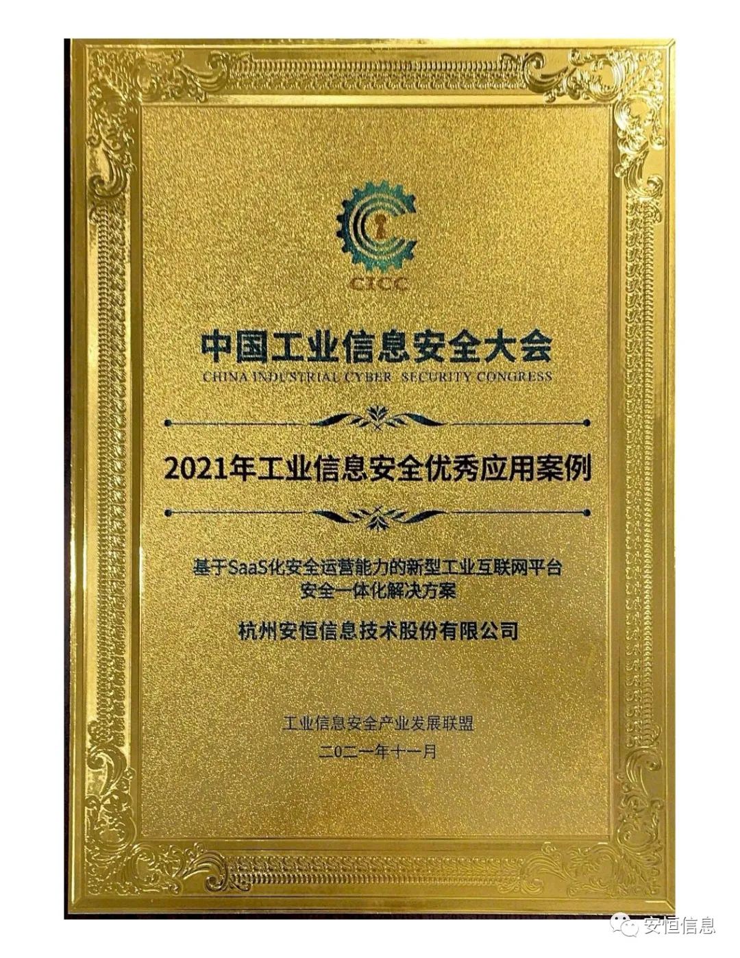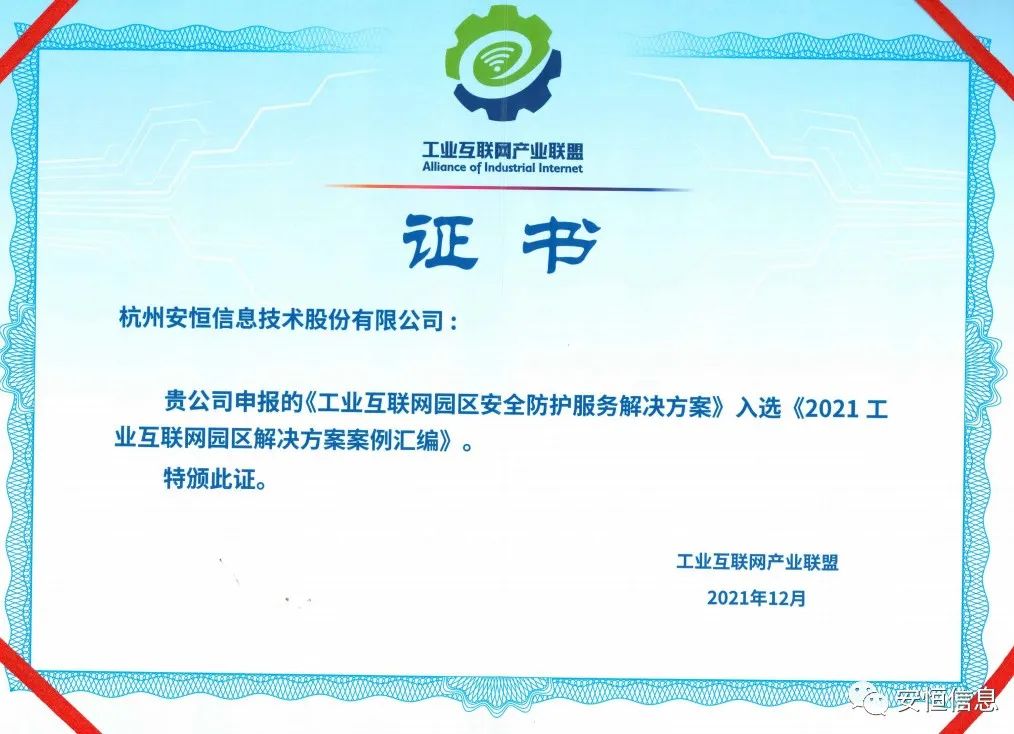 憑借基于SaaS化安全運(yùn)營(yíng)能力的新型工業(yè)互聯(lián)網(wǎng)平臺(tái)安全一體化解決方案獲得2021年工業(yè)信息安全優(yōu)秀應(yīng)用案例,這也是安恒信息連續(xù)第4年獲得此獎(jiǎng)項(xiàng)。