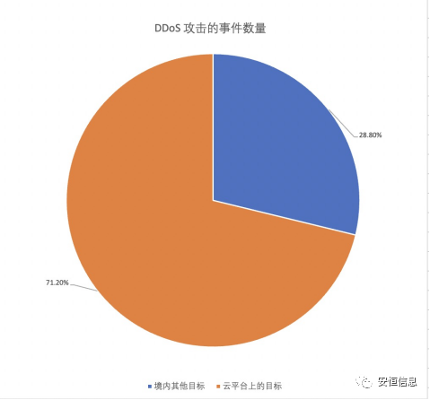 發(fā)生在我國云平臺(tái)上的各類網(wǎng)絡(luò)安全事件數(shù)量占比仍然較高,其中云平臺(tái)上遭受大流量 DDoS 攻擊的事件數(shù)量占境內(nèi)目標(biāo)遭受大流量 DDoS 攻擊事件數(shù)的 71.2%,