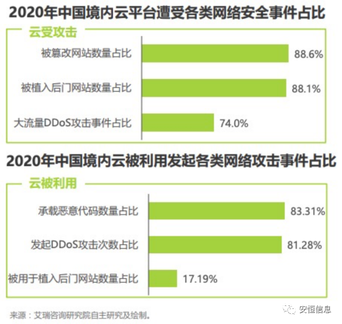 同時(shí),攻擊者經(jīng)常利用我國云平臺(tái)發(fā)起網(wǎng)絡(luò)攻擊,其中云平臺(tái)作為控制端發(fā)起DDoS攻擊的事件數(shù)量占境內(nèi)控制發(fā)起DDoS攻擊的事件數(shù)量的 51.7%、作為攻擊跳板對(duì)外植入后門鏈接數(shù)量占境內(nèi)攻擊跳板對(duì)外植入后門鏈接數(shù)量的 79.3%;