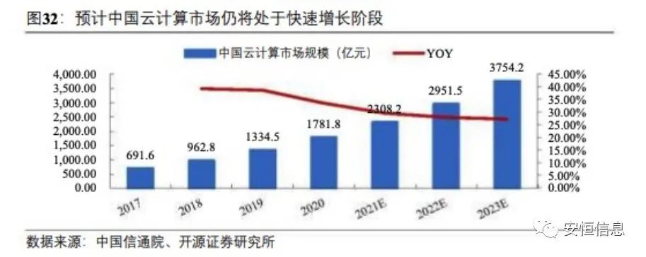 中國云安全市場空間廣闊。根據(jù)中國信通院數(shù)據(jù),2019 年我國云計(jì)算整體市場規(guī)模達(dá) 1334.5 億元,增速 38.6%。預(yù)計(jì) 2020-2022 年仍將處于快速增長階段,到 2023年市場規(guī)模將超過 3754.2 億元。中性假設(shè)下,安全投入占云計(jì)算市場規(guī)模的 3%-5%,那么 2023 年中國云安全市場規(guī)模有望達(dá)到 112.6 億-187.7 億元。