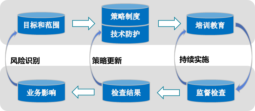 常態(tài)化的數(shù)據(jù)安全運營是對企業(yè)數(shù)據(jù)安全能力建設(shè)成果是否具備持續(xù)生命力的有效支撐,是企業(yè)是否持續(xù)合規(guī)的最有效的保障。在整體安全運營中,通過對安全組織、制度、技術(shù)、培訓(xùn)、檢查、合規(guī)等各子模塊的不斷研究、建設(shè)、服務(wù)和優(yōu)化,形成一個完整的循環(huán)體系,以全面提升企業(yè)數(shù)據(jù)安全管理能力,常態(tài)化的滿足數(shù)據(jù)合規(guī)要求。