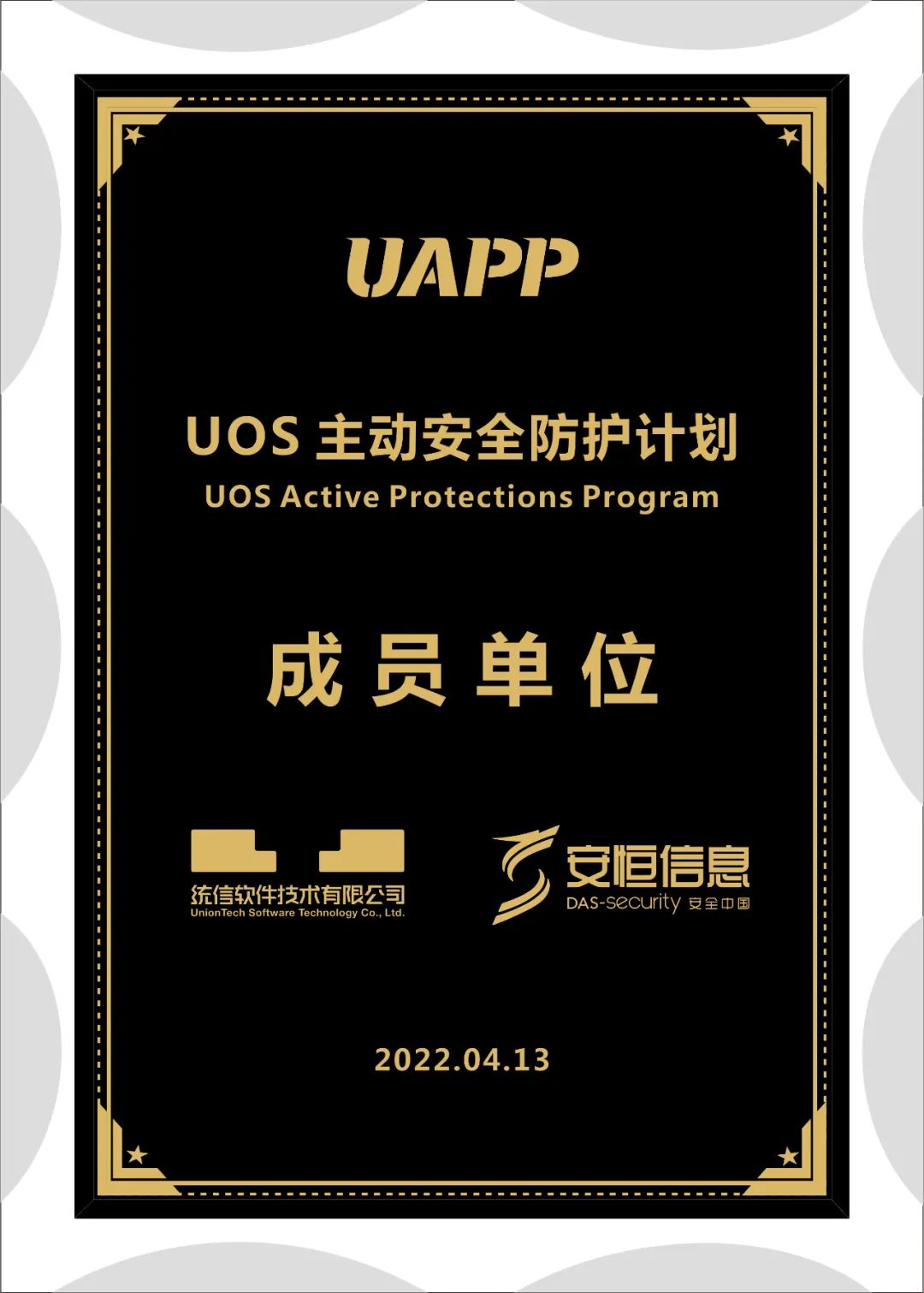 回顧4月13日統(tǒng)信UOS主動安全防護計劃(UAPP)發(fā)布會,安恒信息作為統(tǒng)信軟件的重要合作伙伴出席會議,且成為首批加入UAPP的成員單位,在會后陸續(xù)公開了多個聯合信創(chuàng)解決方案詳細資料。安恒信息將與統(tǒng)信軟件一起,共同打造具備世界頂級安全水平的中國操作系統(tǒng),共建信創(chuàng)基礎軟件平臺安全底座。