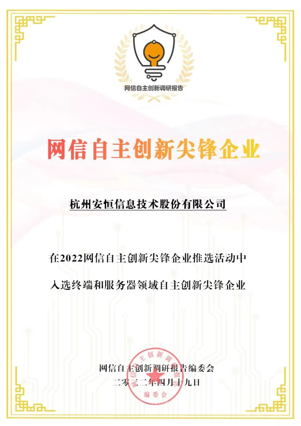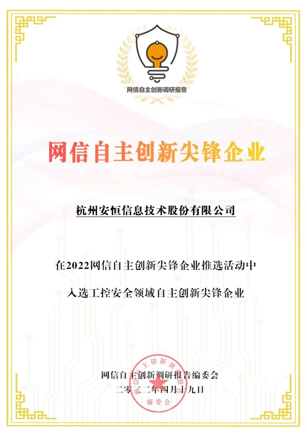編委會還推選出一批具有突出創(chuàng)新能力、取得顯著創(chuàng)新成果、能夠代表創(chuàng)新水平的“網(wǎng)信自主創(chuàng)新尖鋒企業(yè)”,安恒信息榮獲“網(wǎng)信自主創(chuàng)新尖鋒企業(yè)”工控安全領域、云計算領域、終端和服務器領域三項大獎,子公司杭州弗蘭科信息安全科技有限公司榮獲商用密碼領域大獎,這是對我們在信創(chuàng)領域研究成果的充分肯定。