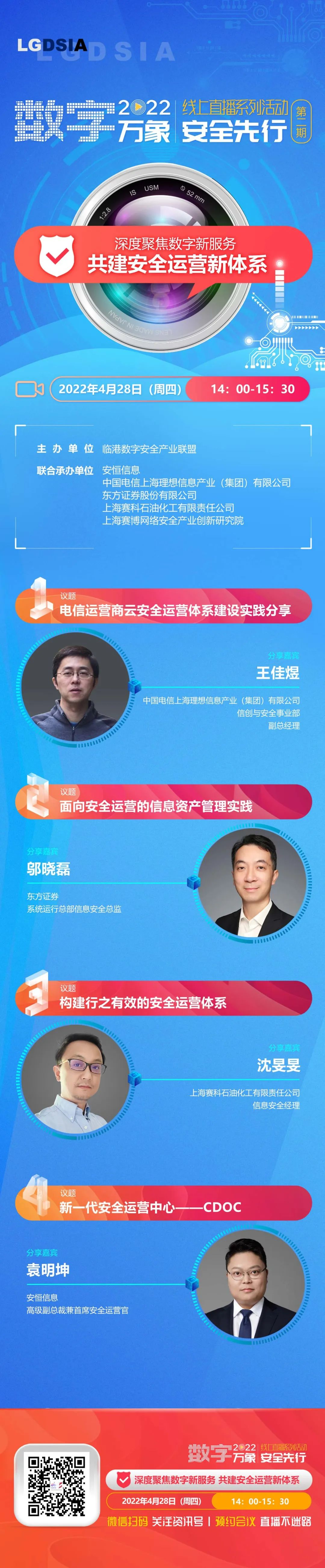 2022【數(shù)字萬象 安全先行】線上直播系列活動第二場將于4月28日(周四)開啟,該場以“深度聚焦數(shù)字新服務(wù) 共建安全運營新體系”為主題,對大型數(shù)字場景與細分賽道下安全運營與服務(wù)的新場景案例、新技術(shù)應(yīng)用、新體系建設(shè)等各方面進行豐富的探討,讓運營更高效,讓服務(wù)更全面,讓安全不設(shè)限。