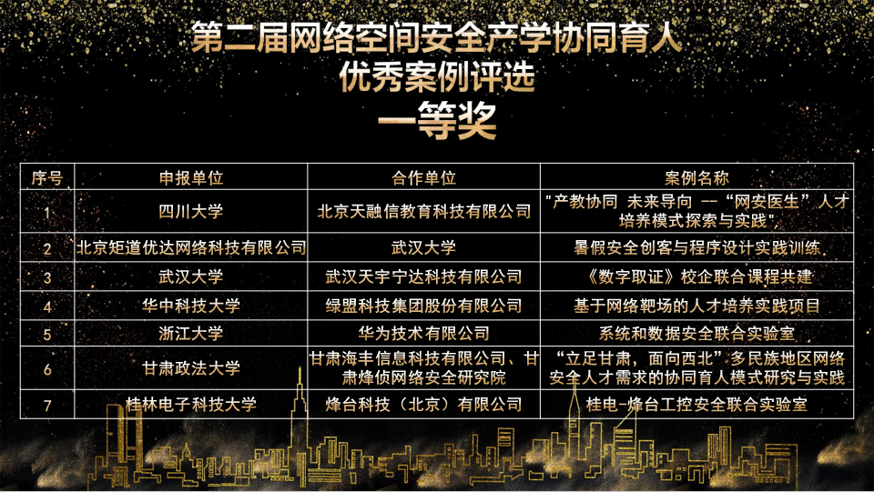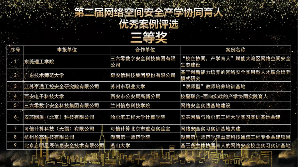 此次評(píng)選落實(shí)了習(xí)近平總書(shū)記在國(guó)家網(wǎng)絡(luò)安全宣傳周作出的關(guān)于國(guó)家網(wǎng)絡(luò)安全工作“四個(gè)堅(jiān)持”原則的重要指示精神,體現(xiàn)了教育部高等學(xué)校網(wǎng)絡(luò)空間安全專業(yè)教學(xué)指導(dǎo)委員會(huì)對(duì)網(wǎng)絡(luò)安全產(chǎn)學(xué)合作育人工作的重視和導(dǎo)向,為網(wǎng)絡(luò)空間安全產(chǎn)學(xué)協(xié)同育人新機(jī)制、新模式的探索搭建了平臺(tái),推動(dòng)了產(chǎn)業(yè)界和高校的交流溝通和育人合作。