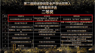 近日,由教育部高等學(xué)校網(wǎng)絡(luò)空間安全專業(yè)教學(xué)指導(dǎo)委員會(huì)產(chǎn)學(xué)合作育人工作組主辦、四川大學(xué)與華中科技大學(xué)共同承辦的“第二屆網(wǎng)絡(luò)空間安全產(chǎn)學(xué)協(xié)同育人優(yōu)秀案例評(píng)選會(huì)”成功召開(kāi)。經(jīng)過(guò)評(píng)審專家組的嚴(yán)格評(píng)議,安恒信息申報(bào)的案例《四向雙循環(huán)“技產(chǎn)學(xué)研”融合創(chuàng)新模式》從眾多優(yōu)秀案例中脫穎而出,榮獲二等獎(jiǎng),在所有參與申報(bào)的網(wǎng)安企業(yè)中位列第一。