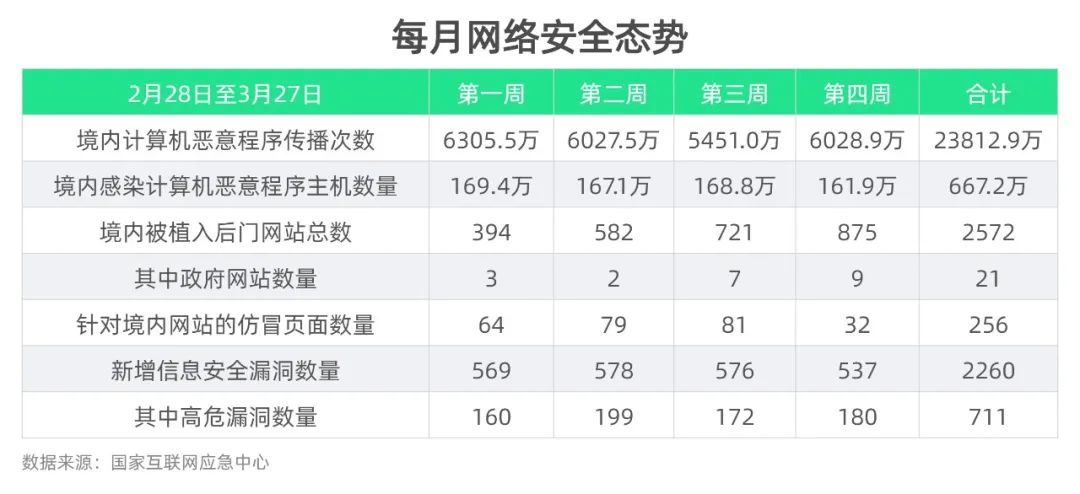 統(tǒng)計(jì)數(shù)據(jù)顯示,2022年3月境內(nèi)計(jì)算機(jī)惡意程序傳播次數(shù)達(dá)到2.3億次之多,較2月小幅上漲4.97%。3月每周的境內(nèi)計(jì)算機(jī)惡意傳播次數(shù)先降后增,整體較第一周均有所下降。第1周最高,達(dá)到6305.5萬(wàn),第3周最低,降到5451萬(wàn)。境內(nèi)感染計(jì)算機(jī)惡意程序主機(jī)數(shù)量來(lái)看,3月達(dá)到667.2萬(wàn),每周數(shù)據(jù)平穩(wěn),整體較2月小幅上漲10.54%。惡意程序會(huì)損壞文件、造成系統(tǒng)異常、竊取數(shù)據(jù)等,對(duì)計(jì)算機(jī)傷害很大,一定要高度重視。加強(qiáng)企業(yè)安全防護(hù),加強(qiáng)個(gè)人安全意識(shí)尤為重要。