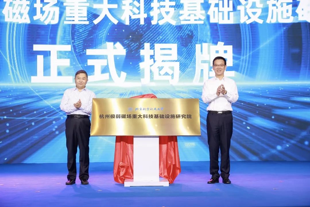 章登峰與房建成共同為“杭州極弱磁場重大科技基礎(chǔ)設(shè)施研究院”揭牌。房建成介紹了杭州極弱磁場重大科技基礎(chǔ)設(shè)施研究院情況,分享了研究院的目標(biāo)愿景。研究院承擔(dān)“超高靈敏極弱磁場和慣性測量裝置”國家重大科技基礎(chǔ)設(shè)施項目的建設(shè)和運(yùn)營,是浙江省唯一納入《國家重大科技基礎(chǔ)設(shè)施“十四五”規(guī)劃》的重點項目,為高新區(qū)(濱江)“大平臺—大團(tuán)隊—大項目—大成果”的“集團(tuán)軍”創(chuàng)新注入了澎湃動力。