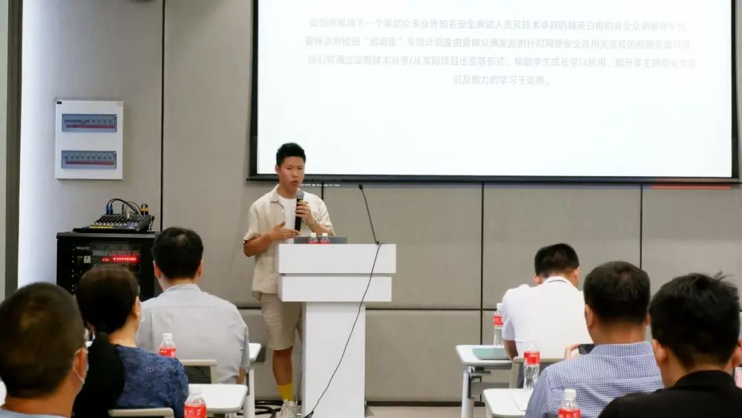 安恒信息安全研究員、目前雷神眾測(cè)總排名第一的Poc Sir為各高校介紹安恒信息旗下集結(jié)了眾多業(yè)界知名安全測(cè)試人員及技術(shù)卓越的精英白帽的安全眾測(cè)服務(wù)平臺(tái)----雷神眾測(cè),通過(guò)平臺(tái)發(fā)起的雷神眾測(cè)校園“啟明星”專項(xiàng)計(jì)劃,希望能利用定期技術(shù)分享/從實(shí)際項(xiàng)目出發(fā)等形式,幫助學(xué)生成長(zhǎng)學(xué)以致用,提升學(xué)生網(wǎng)絡(luò)安全知識(shí)及能力的學(xué)習(xí)于運(yùn)用。