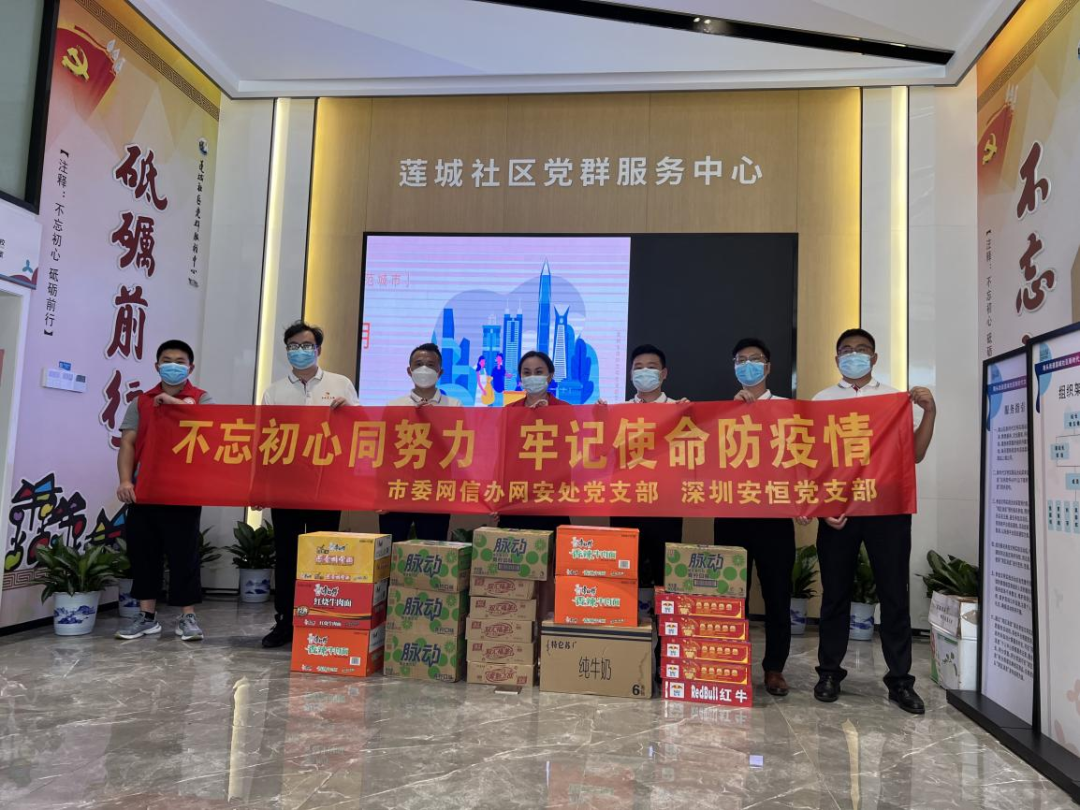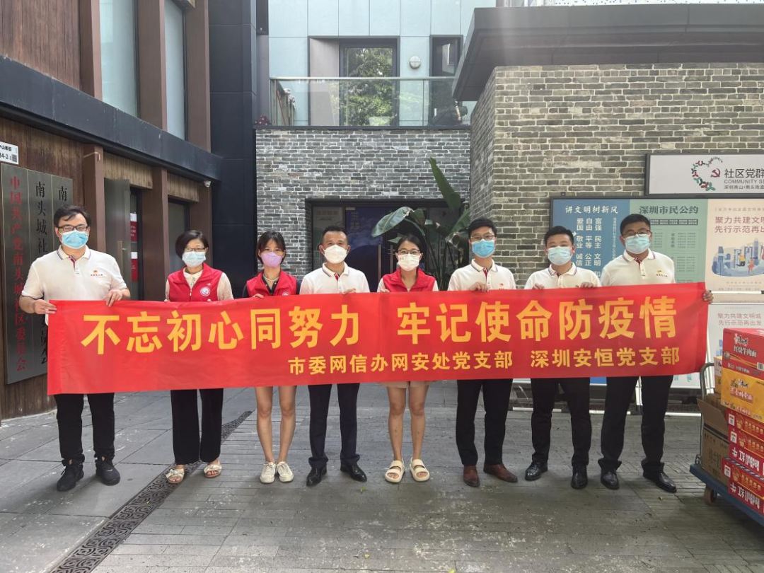 上周,深圳疫情呈現(xiàn)局部爆發(fā)態(tài)勢,再次牽動全國人民的心。為落實黨中央“疫情要防住、經(jīng)濟(jì)要穩(wěn)住、發(fā)展要安全”的重要要求,堅持“動態(tài)清零”總方針不猶豫不動搖,同時積極發(fā)揮廣大黨員干部“動”起來的責(zé)任擔(dān)當(dāng)要求,深圳安恒黨支部聯(lián)合深圳市委網(wǎng)信辦網(wǎng)安處黨支部共同開展一場戰(zhàn)“疫”黨建活動,用實際行動助力深圳社區(qū)疫情防控工作。在了解到南頭街道四個社區(qū)——南頭城社區(qū)、大汪山社區(qū)、星海名城社區(qū)、蓮城社區(qū)需要支援和幫助后,他們快速集結(jié)力量,采購生活物資,頂著烈日高溫,為這四個社區(qū)送去生活上的物資幫助,同時為服務(wù)社區(qū)疫情防控工作的一線抗疫人員送上夏日清涼,為深圳抗疫阻擊戰(zhàn)貢獻(xiàn)綿薄之力。
