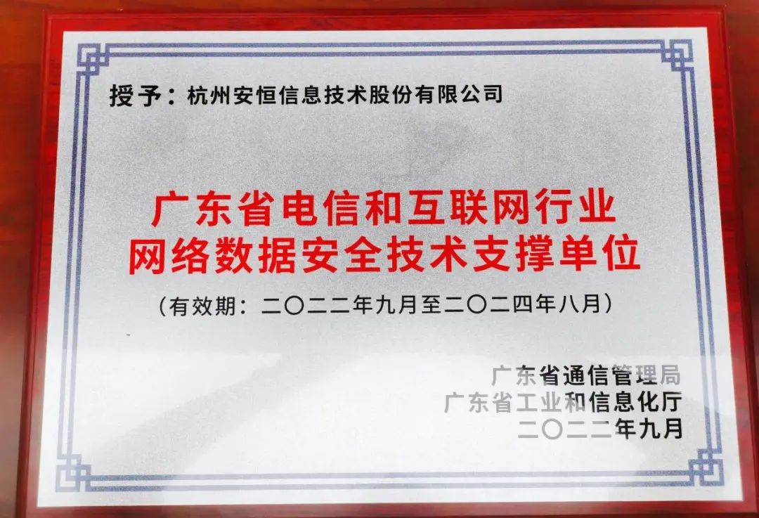 首批!榮獲廣東省電信和互聯(lián)網(wǎng)行業(yè)網(wǎng)絡(luò)數(shù)據(jù)安全基礎(chǔ)支撐單位