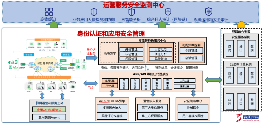 安恒信息AiTrust產(chǎn)品基于零信任思想理念,幫助算力網(wǎng)絡(luò)構(gòu)建分布式身份管理和訪問應用的異常行為溯源能力,實現(xiàn)身份和應用的可信驗證。算力網(wǎng)絡(luò)大腦可配合TAM身份管理中心和DSG-APP應用代理網(wǎng)關(guān),并結(jié)合SPA敲門技術(shù)和終端環(huán)境感知技術(shù),實現(xiàn)算力節(jié)點的動態(tài)隱身,算力網(wǎng)絡(luò)接入設(shè)備的流量身份化、權(quán)限最小化、信任度量化。