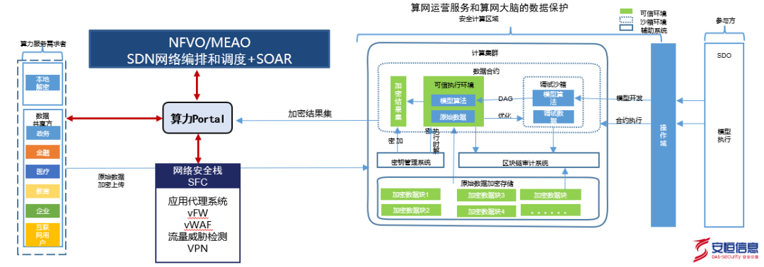 一是能力調(diào)度,根據(jù)算力用戶需求,協(xié)調(diào)資源完成安全組件的自動化部署、自動化開通、安全策略下發(fā);