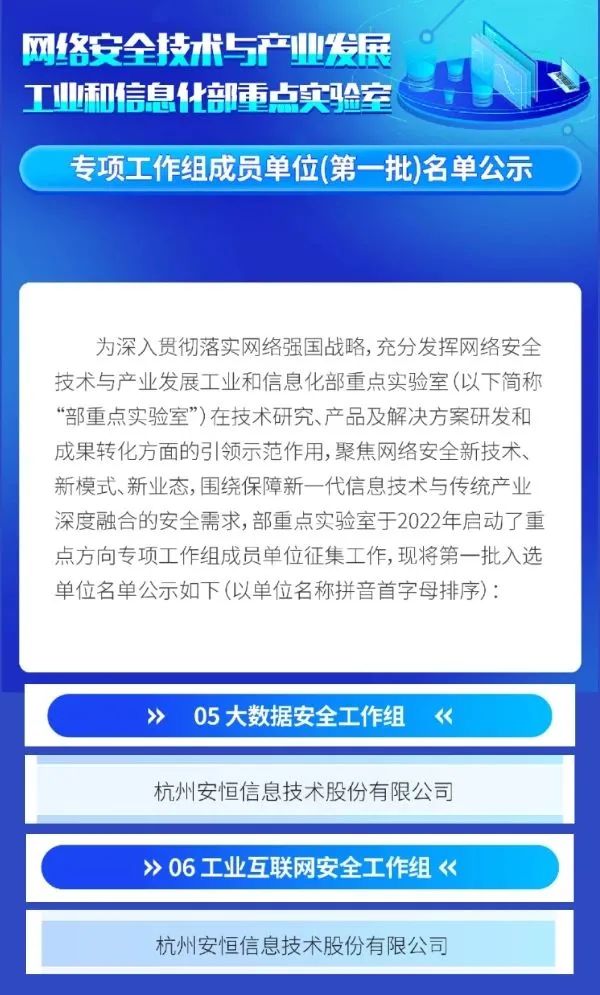 安恒信息首批入選工信部重點(diǎn)實(shí)驗(yàn)室專項(xiàng)工作組