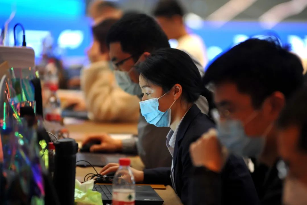 在2022“網(wǎng)安·論道”安恒杯青島網(wǎng)絡安全大賽決賽現(xiàn)場,“格子間”的比賽選手“網(wǎng)絡論劍”,會場中間的大屏幕,實時滾動賽場選手的挑戰(zhàn)成績。網(wǎng)絡安全的先鋒隊和主力軍,正以技術(shù)決戰(zhàn)題海,用代碼縱橫沙場,激烈開展一場舍我其誰的“安全”較量。