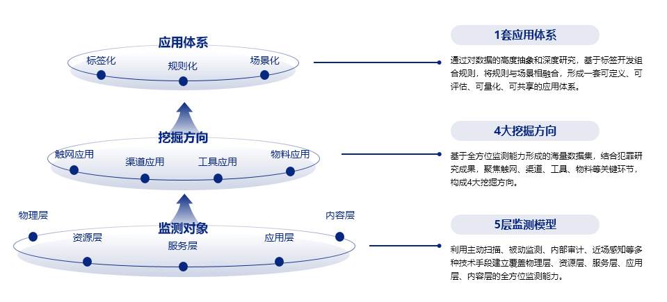 針對新型網(wǎng)絡(luò)犯罪手段的技術(shù)性、犯罪對象的隨機(jī)性、犯罪行為的非接觸性三種獨(dú)特屬性,追獵實(shí)驗(yàn)室提出“網(wǎng)絡(luò)空間治理145體系”,對犯罪分子用以觸達(dá)用戶核心資源載體“Web網(wǎng)址”進(jìn)行深度畫像,預(yù)先切斷犯罪觸角。