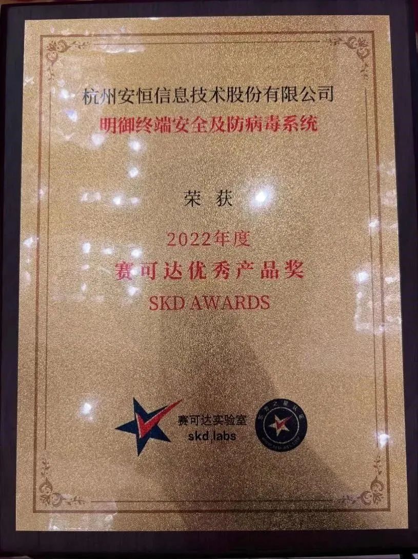 近日,國際知名第三方網(wǎng)絡(luò)安全檢測服務(wù)機構(gòu)——賽可達(dá)實驗室發(fā)布了備受業(yè)界矚目的SKD AWARDS 2022年度獲獎名單,安恒信息“明御終端安全及防病毒系統(tǒng)(EDR)”榮獲“2022年度賽可達(dá)優(yōu)秀產(chǎn)品獎(SKD AWARDS )”,這是連續(xù)三年來安恒信息EDR第4次獲得賽可達(dá)獎項。