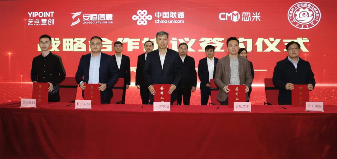 天津市工信局黨組書記、局長(zhǎng)尹繼輝,天津市工業(yè)和信息化局黨組成員、副局長(zhǎng)周勝昔,天津聯(lián)通黨委書記、總經(jīng)理陳海波,天津聯(lián)通黨委委員、副總經(jīng)理張明山,安恒信息副總裁、運(yùn)營(yíng)商行業(yè)部總裁盧小波等出席簽約儀式,天津聯(lián)通產(chǎn)業(yè)互聯(lián)網(wǎng)研究院院長(zhǎng)張守華,安恒信息天津分公司總經(jīng)理石立峰代表雙方簽署戰(zhàn)略合作協(xié)議。