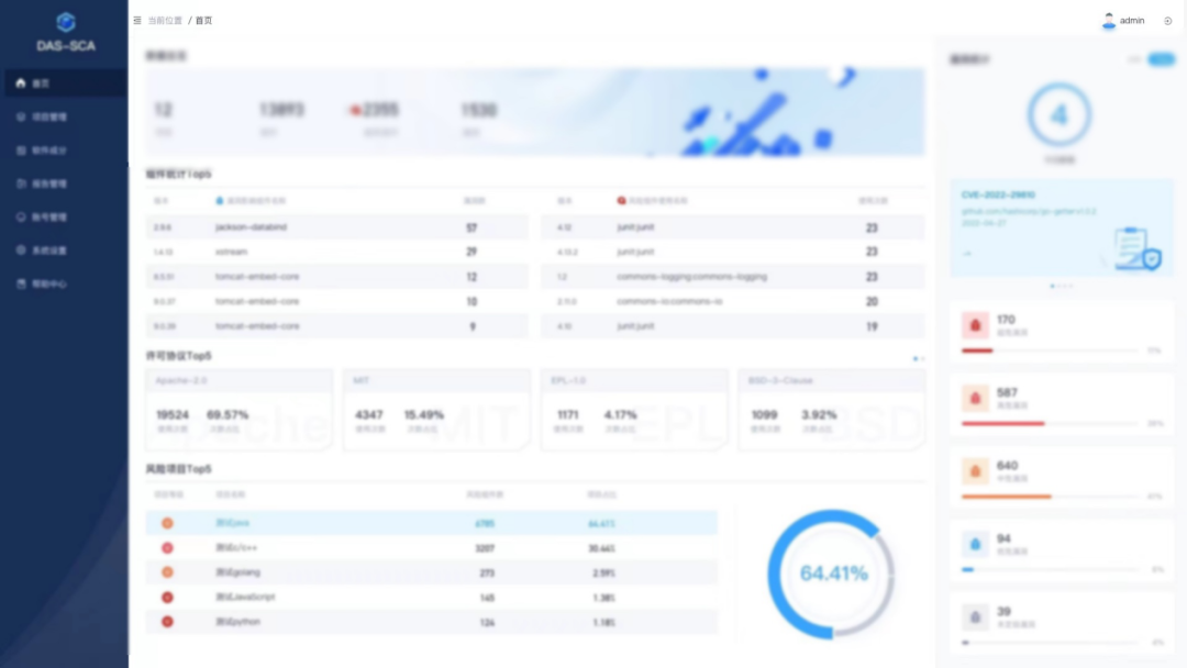 安恒信息車聯(lián)網(wǎng)和中央研究院共同推出的“軟件成分分析平臺(tái)”是一款智能組件風(fēng)險(xiǎn)分析平臺(tái)(以下簡(jiǎn)稱“DAS-SCA”),是面向軟件開發(fā)安全需求研發(fā)的基于軟件開發(fā)安全生命周期管理的組件風(fēng)險(xiǎn)檢測(cè)平臺(tái)。該平臺(tái)能夠在企業(yè)軟件開發(fā)期及上線后進(jìn)行風(fēng)險(xiǎn)檢測(cè)和監(jiān)測(cè),形成軟件應(yīng)用生命周期管理。DAS-SCA支持對(duì)源代碼、二進(jìn)制等文件中的組件進(jìn)行深層解析,實(shí)時(shí)監(jiān)測(cè)0day風(fēng)險(xiǎn)。并基于機(jī)器學(xué)習(xí)技術(shù),能夠?qū)?xiàng)目引用到的組件及漏洞進(jìn)行高效深層分析。