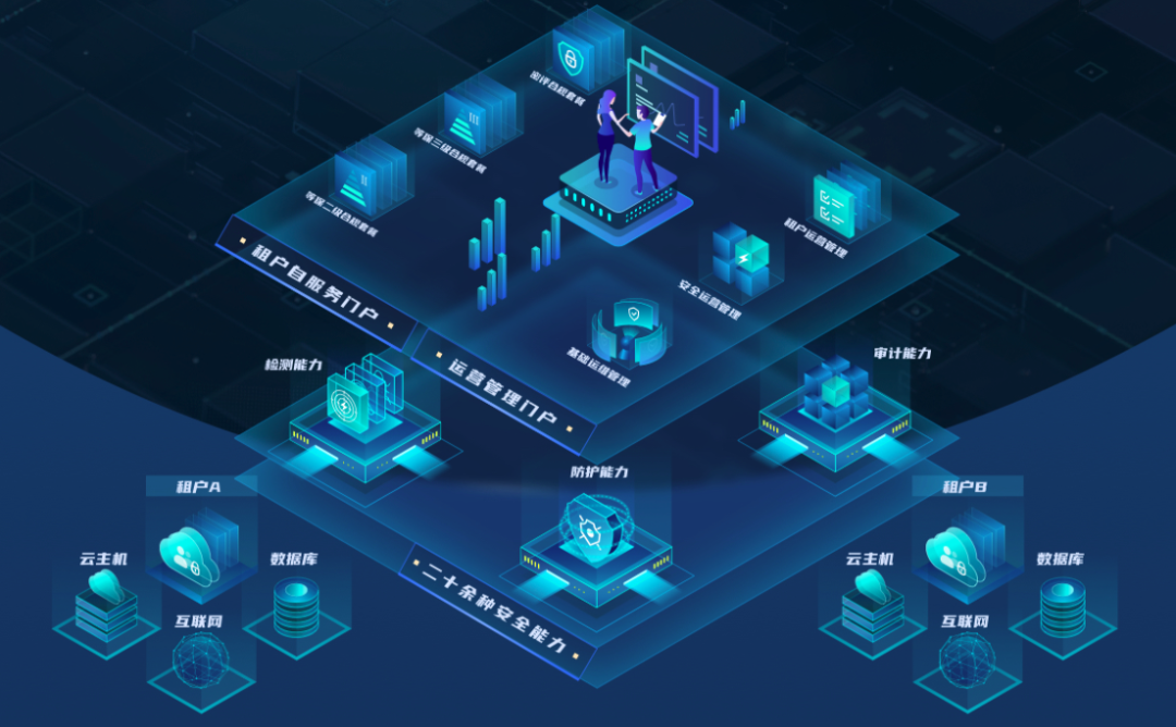 安恒云-天池云安全管理平臺創(chuàng)新性的本地SaaS模式向政務(wù)云租戶提供安全能力。除了基礎(chǔ)的等保合規(guī)類能力外,同時包括了數(shù)據(jù)安全類、密評合規(guī)類、攻防實戰(zhàn)類等共計20余種安全能力,充分滿足全國一體化大數(shù)據(jù)體系的多樣化安全需求。同時支持建設(shè)技術(shù)、人員、流程相結(jié)合的云上安全運營中心,打造有效、主動、閉環(huán)的云上安全運營體系。