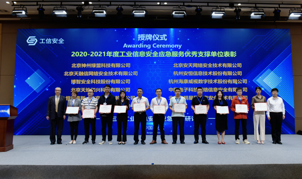 2020-2021年度工業(yè)信息安全應急服務優(yōu)秀支撐單位(左五為安恒信息)