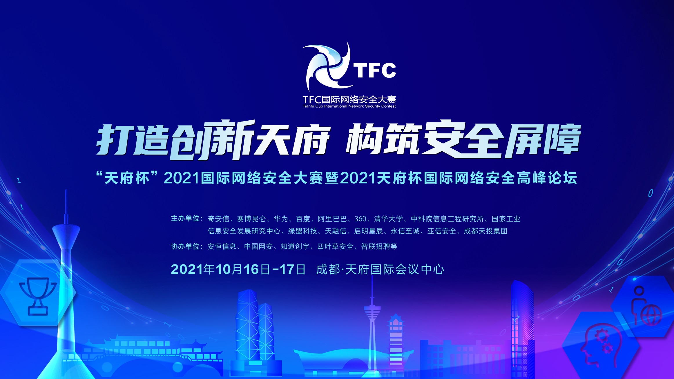 主辦單位:奇安信、賽博昆侖、華為、百度、阿里巴巴、360、清華大學(xué)、中科院信息工程研究所、國家工業(yè)信息安全發(fā)展研究中心、綠盟、天融信、啟明星辰、永信至誠、亞信安全、成都天投集團等