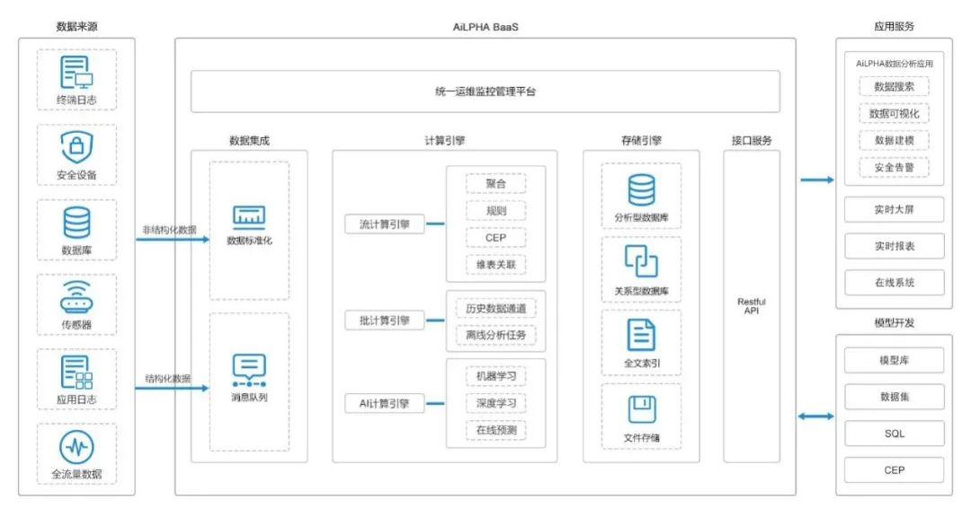 安恒AiLPHA大數(shù)據(jù)智能安全平臺,是網(wǎng)絡(luò)安全大數(shù)據(jù)領(lǐng)域十分優(yōu)秀的產(chǎn)品和應(yīng)用解決方案,其內(nèi)部集成著:超大規(guī)模數(shù)據(jù)存查、大數(shù)據(jù)實(shí)時(shí)智能分析、威脅情報(bào)碰撞、全網(wǎng)流量處理、復(fù)雜事件實(shí)時(shí)處理等功能,更具備了流計(jì)算任務(wù)監(jiān)控管理、安全模型定制化開發(fā)與編排管理、ES及kafka運(yùn)維監(jiān)控管理、語法統(tǒng)一與轉(zhuǎn)換功能。
