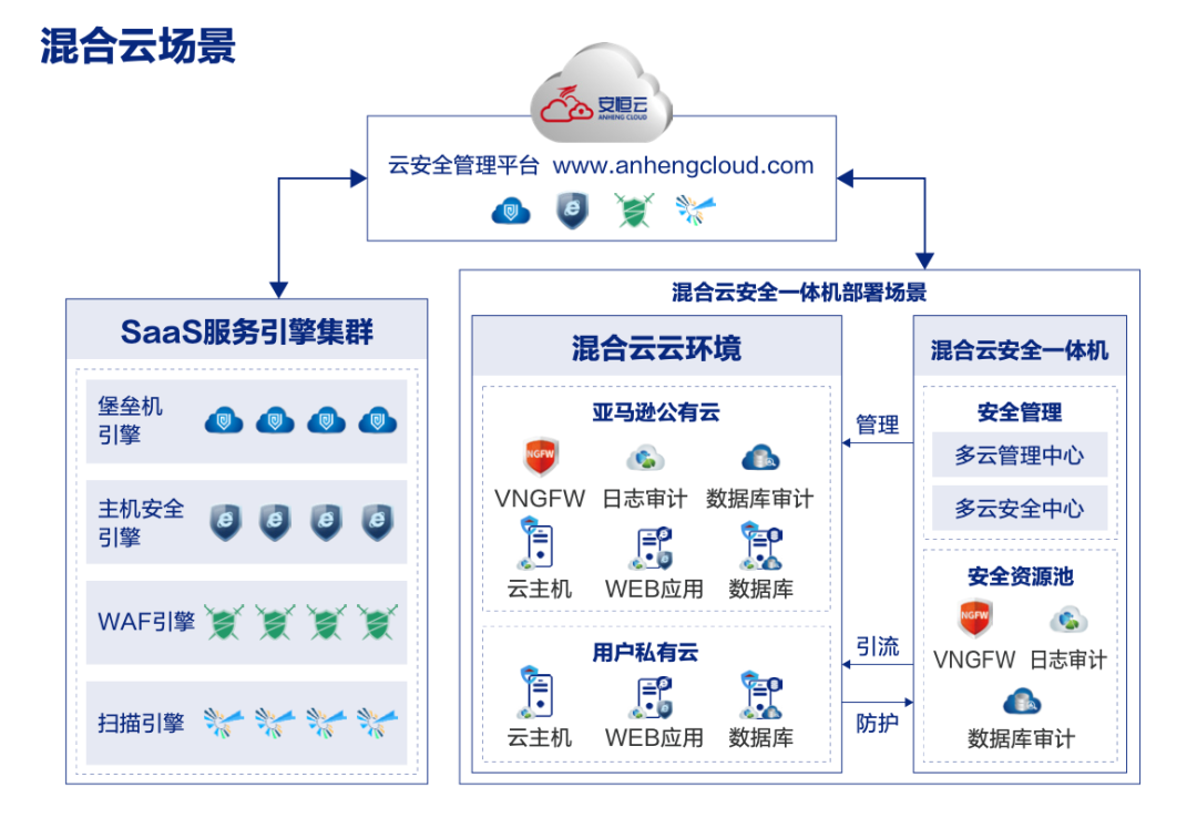 安恒云等保解決方案覆蓋多云、混合云、公有云場景。