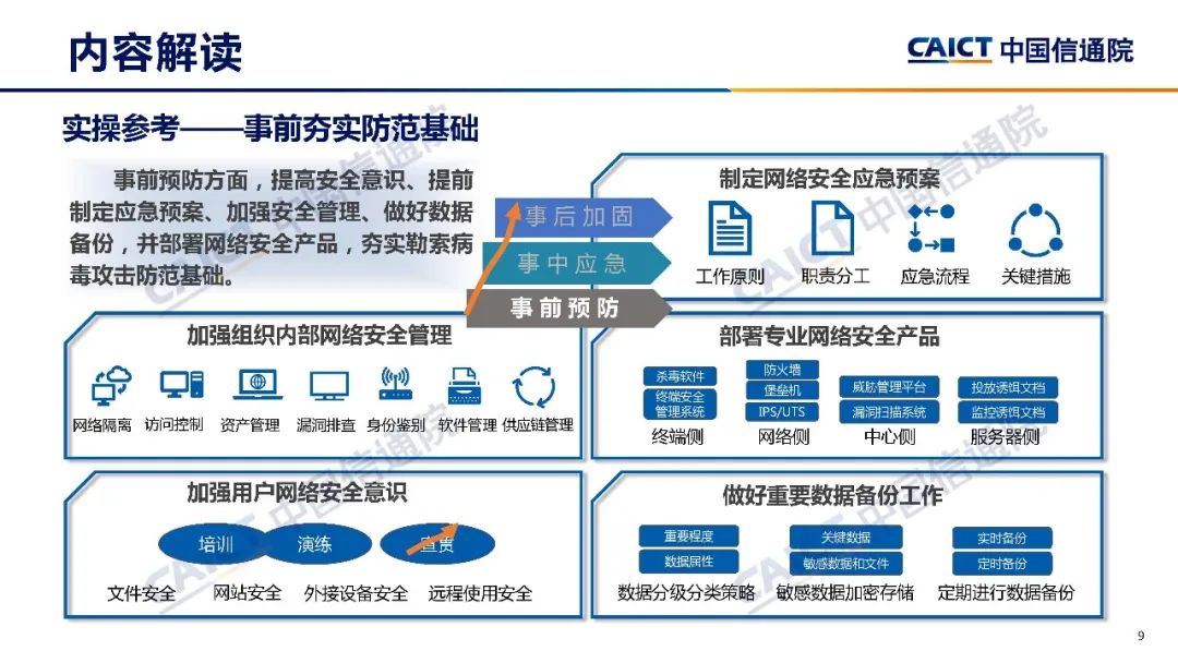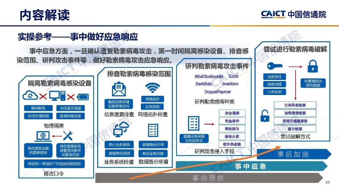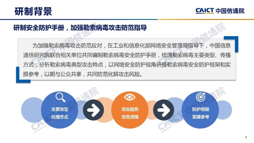 為加強勒索病毒攻擊防范應對,在工業(yè)和信息化部網絡安全管理局指導下,中國信息通信研究院(以下簡稱“中國信通院”)聯(lián)合行業(yè)七家單位共同編制《勒索病毒安全防護手冊》(以下簡稱“《手冊》”),梳理勒索病毒主要類型、傳播方式,分析勒索病毒攻擊特點和典型勒索病毒攻擊階段,聚焦事前預防,事中應急、事后加固三個環(huán)節(jié),研提勒索病毒攻擊防范應對框架和實操參考,以期與公眾分享,共同防范化解攻擊風險。