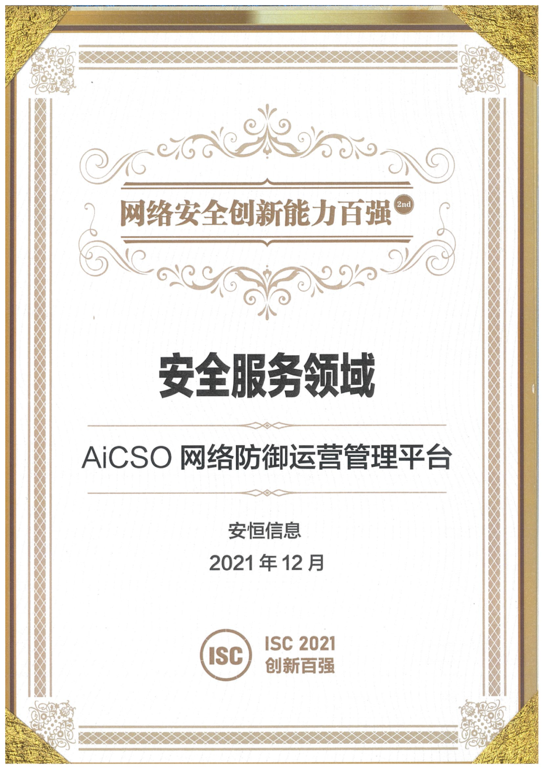 14日,在由ISC平臺發(fā)起的“第二屆ISC網(wǎng)絡(luò)安全創(chuàng)新能力百強評選活動”頒獎典禮上,安恒信息憑借創(chuàng)新產(chǎn)品“AiCSO網(wǎng)絡(luò)防御運營管理平臺”在安全服務(wù)領(lǐng)域入圍百強。