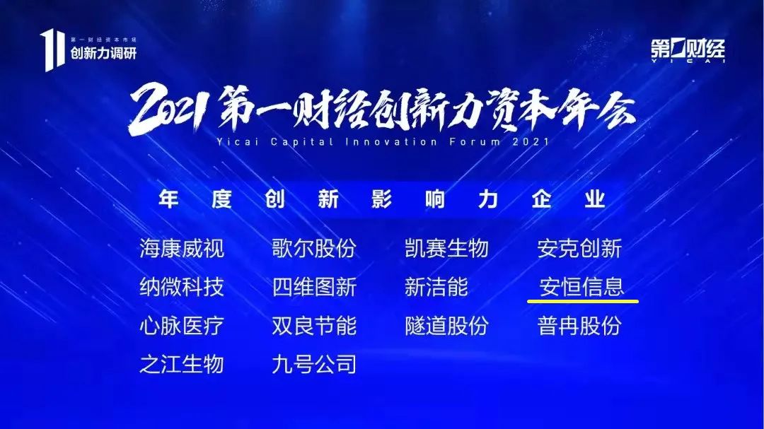 12月23日,第一財經在上海舉辦“2021年第一財經創(chuàng)新力資本年會”,安恒信息受邀參與本次會議,與現場的權威專家學者、知名投資人、龍頭企業(yè)代表一起,共同分享創(chuàng)新感悟與年度觀察,探討創(chuàng)新驅動與產業(yè)升級的前瞻思考。會議上公布了第一財經創(chuàng)新力調研結果,安恒信息斬獲“2021年度創(chuàng)新影響力企業(yè)”榮譽。