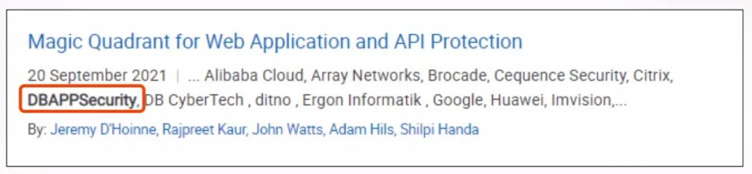 在全球權(quán)威IT研究與顧問咨詢公司Gartner發(fā)布的2021年《Web應用防火墻魔力象限》報告中,安恒信息被榮譽提及。