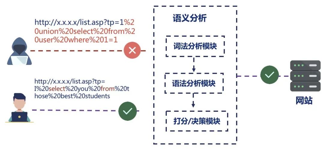 新一代智能WAF語義分析引擎采用智能識別、分析研判、綜合評估相結(jié)合的方式,對攻擊行為進行檢測、防御,內(nèi)置包括SQL注入、XSS、Webshell在內(nèi)的13種語義語法檢測類型。顯著提高0day檢出率,降低誤報率、漏報率。