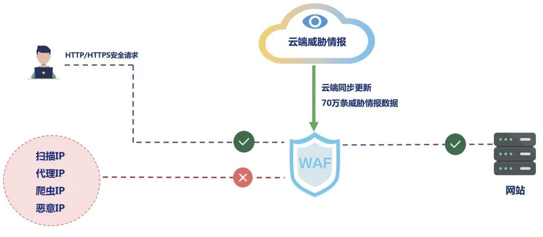 新一代智能WAF與云端威脅情報聯(lián)動,威脅情報數(shù)據(jù)實時更新,主動發(fā)現(xiàn)可疑訪問行為,快速檢測僵尸IP、掃描IP、肉雞IP等惡意IP等對業(yè)務系統(tǒng)的可疑訪問行為。幫助客戶快速定位潛在威脅。