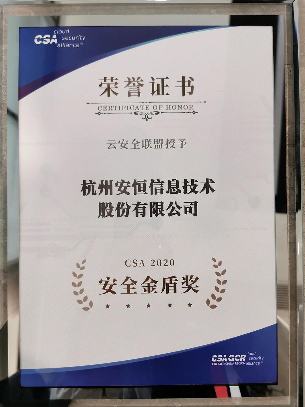 安恒信息作為首批加入CSA聯(lián)盟的成員單位,參與協(xié)辦本次大會(huì),并獲得云安全聯(lián)盟大中華區(qū)頒發(fā)的“CSA GCR 五周年貢獻(xiàn)獎(jiǎng)”、“CSA 2020安全金盾獎(jiǎng)”兩項(xiàng)殊榮。