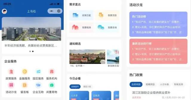 “濱江上馬石”微信小程序,是杭州高新區(qū)(濱江)為區(qū)內(nèi)企業(yè)打造的e服務(wù)平臺,由安恒信息研發(fā)完成。平臺依托城市大腦-經(jīng)濟主體大數(shù)據(jù)平臺底座,及應(yīng)用數(shù)據(jù)的支撐,以“扶上馬、送一程”為目的,將進(jìn)一步鏈接政府-企業(yè)-銀行-園區(qū),營造出更加良好的創(chuàng)新創(chuàng)業(yè)生態(tài)。