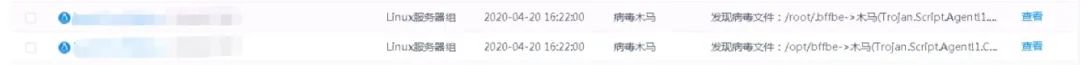 3、通過對該服務(wù)器進(jìn)行病毒查殺,掃描出病毒文件/root/.bffbe和/opt/bffbe。