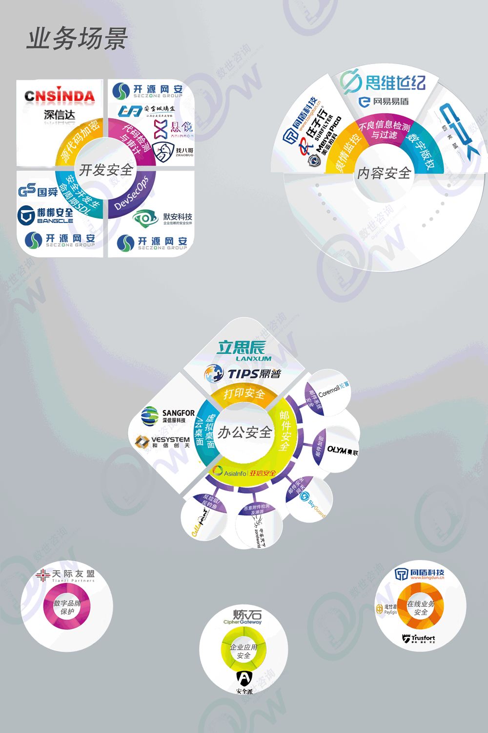 本次“安全能力圖譜”為數(shù)世咨詢?cè)瓌?chuàng)與首發(fā),并首選了業(yè)界100多家的優(yōu)秀安全能力提供者,但難免會(huì)有所遺漏和失誤,衷心希望廣大關(guān)心網(wǎng)絡(luò)安全產(chǎn)業(yè)發(fā)展的有識(shí)之士提出建議和指正。同時(shí),圖譜的繪制過(guò)程得到許多業(yè)內(nèi)領(lǐng)導(dǎo)、專家和安全領(lǐng)袖們的支持,數(shù)世咨詢?cè)诖吮硎旧钌畹馗兄x!