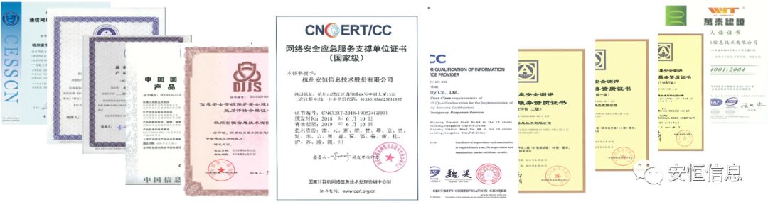 作為國家級(jí)核心網(wǎng)絡(luò)安全技術(shù)支撐單位,安恒信息先后獲得了安全工程、風(fēng)險(xiǎn)評(píng)估、應(yīng)急響應(yīng)等國家最高級(jí)的安全服務(wù)資質(zhì),具備很強(qiáng)的安全服務(wù)支撐能力。