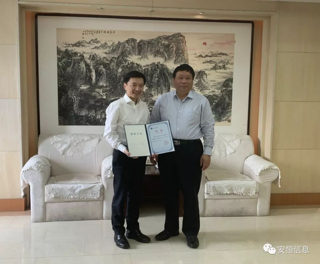 山東科技大學(xué)計(jì)算機(jī)科學(xué)與工程學(xué)院院長(zhǎng)梁永全和安恒信息副總裁蘆健簽署戰(zhàn)略合作協(xié)議。