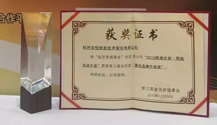 2019西湖論劍·網(wǎng)絡(luò)安全大會榮獲“金匠獎最佳品牌升級獎”