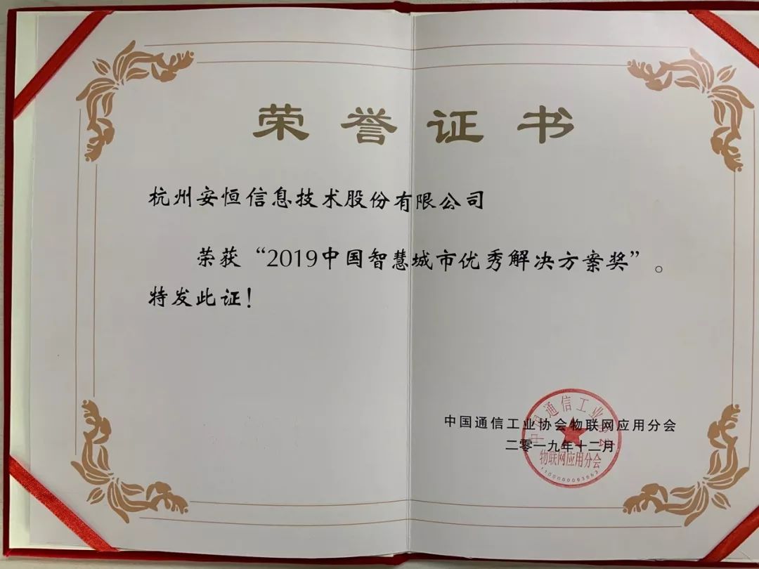 1? 2019中國智慧城市優(yōu)秀解決方案獎
