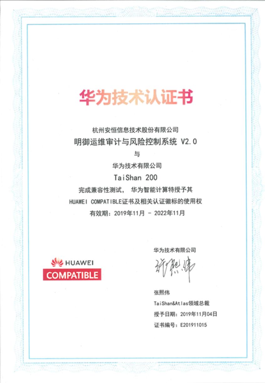 2019年11月11日,華為重磅發(fā)布,與安恒明星產(chǎn)品堡壘機完成鯤鵬CPU適配,這不僅是對安恒堡壘機的高度認可,更是對安恒的認可 。