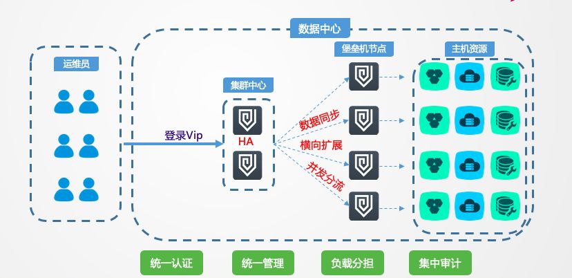 支持集群化部署,滿足超大運維量下的并發(fā)需求,實現(xiàn)統(tǒng)一管理,統(tǒng)一授權(quán),統(tǒng)一審計的需求。