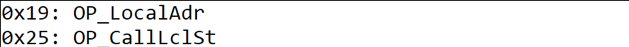 從P-Code中可以看出, arr(0) = 1這句對(duì)應(yīng)的指令索引的是本地變量棧(OP_CallLclSt, 0x25),Call Join(arr)這句對(duì)應(yīng)的指令索引的也是本地變量棧(OP_LocalAdr, 0x19),從兩個(gè)指令名稱中我們可以猜測(cè)arr被存儲(chǔ)在本地變量棧上。?