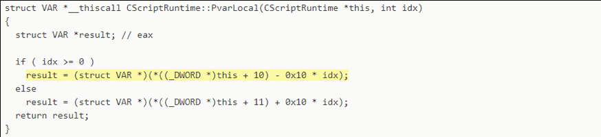 上述兩個(gè)分支都調(diào)用了CScriptRuntime::PvarLocal方法,再來(lái)看一下CScriptRuntime::PvarLocal方法的實(shí)現(xiàn):