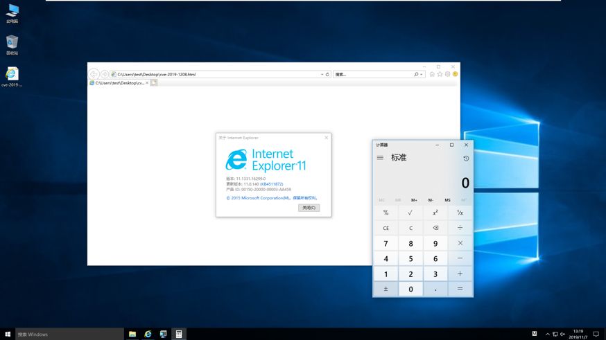 最終,筆者成功在windows 10 1709 x86系統(tǒng)的2019年8月全補(bǔ)丁環(huán)境上彈出一個(gè)計(jì)算器: