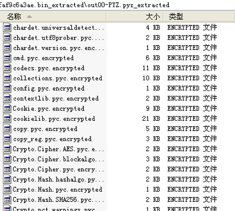 ReportSVC.exe程序?yàn)榧舆^密的python打包程序,將該程序進(jìn)行解包并反編譯還原如下: